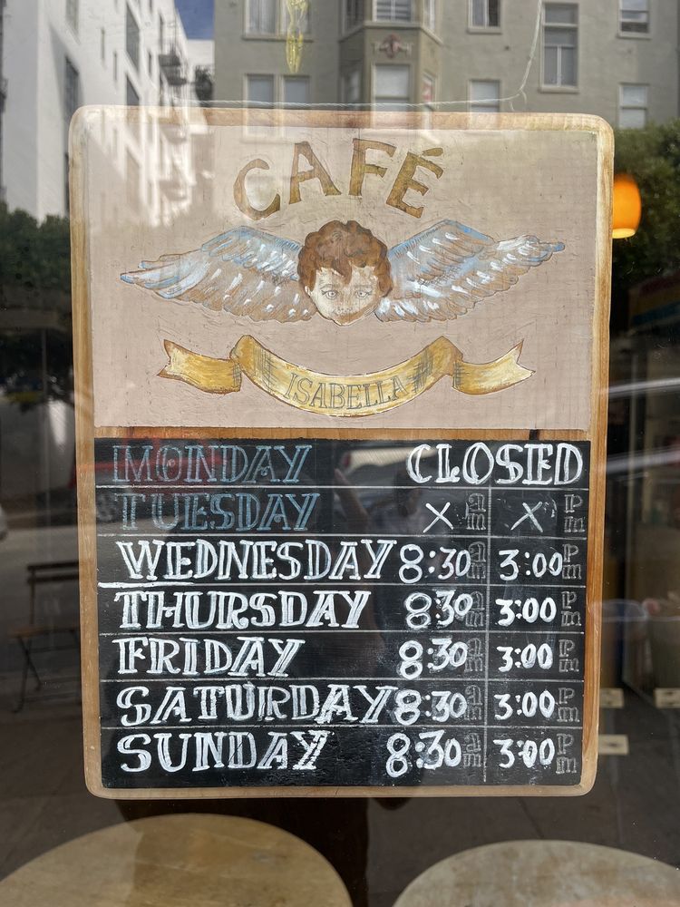 The atmosphere is friendly and inviting, perfect for enjoying your meal outdoors on a sunny San Francisco day. Customers rave about the accommodating staff and their ability to cater to customizations, ensuring that every meal is perfect. With coffee options ranging from Cafe Lattes to Azteca Mochas, you're bound to find your morning pick-me-up. Experience the neighborhood gem that is Cafe Isabella—where good food meets great service!